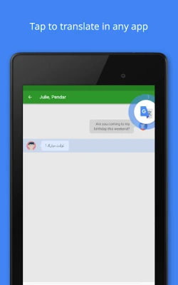 • Tap to Translate: Copy text in any app and tap the Google Translate icon to translate (all languages)